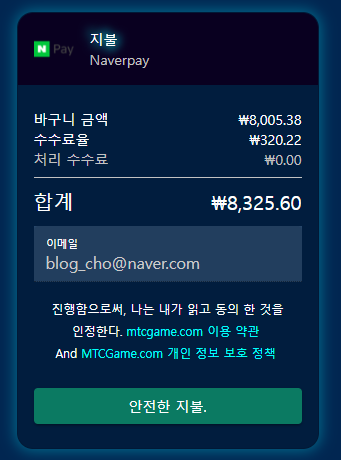당시 mtcgame에서 8,587원에 100리라였다. (지금은 조금 더 싸며, 결제 방식 카드에 따라 더 금액이 줄어듬)