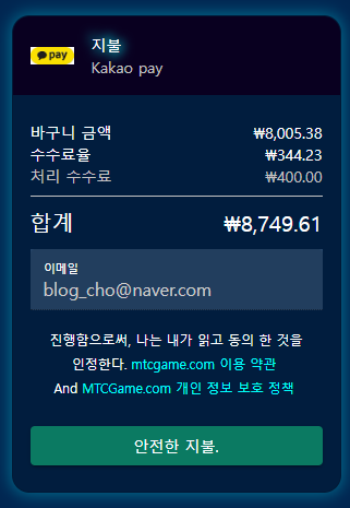 전에도 적었지만 결제시에도 수수료가 있기에 잘 확인해서 싸게 구매하면 좋을거 같다.