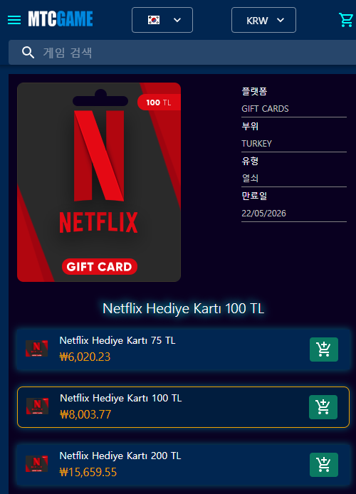 | 넷플릭스 터키 2편 - 터키 넷플릭스 기프트카드 싸게 사는 방법 MTCGAME (0) | 2023.05.31 |